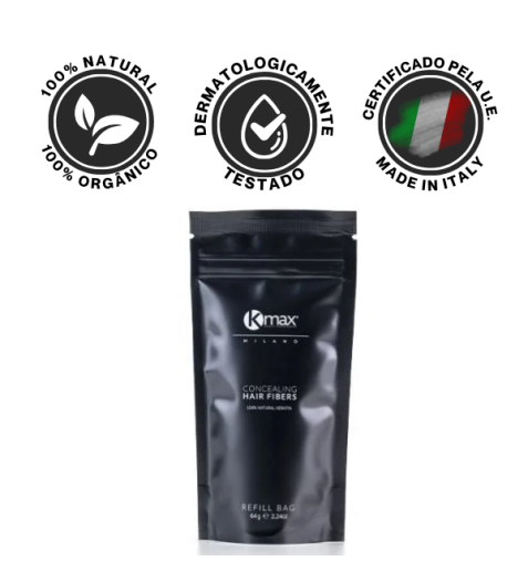 Kmax fibras capilares é a solução rápida e natural para dissimular a falta de densidade no cabelo. Estas microfibras capilares de queratina aderem ao cabelo existente, criando um efeito de volume instantâneo.