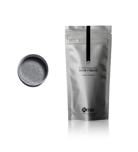 Kmax keratin hair concealing microfibers é uma nova fórmula de microfibras que liga-se eletrostaticamente aos cabelos escarsos, finos e semitransparentes, dando em poucos segundos um efeito incrível de volume e disfarçando as áreas brilhantes do couro cabeludo.