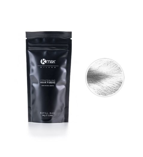 As fibras de reconstrução capilar Kmax são microfibras de queratina que aderem ao cabelo por meio de eletricidade estática, densificando o cabelo e cobrindo instantaneamente áreas de calvície, alopecia ou cabelos finos.