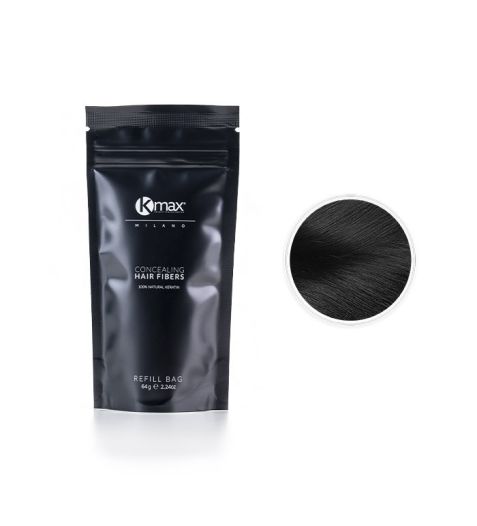 As fibras de reconstrução capilar Kmax são microfibras de queratina que aderem ao cabelo por meio de eletricidade estática, densificando o cabelo e cobrindo instantaneamente áreas de calvície, alopecia ou cabelos finos.