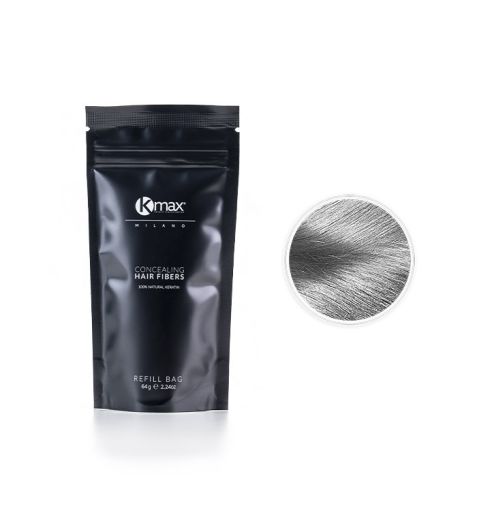 As fibras de reconstrução capilar Kmax são microfibras de queratina que aderem ao cabelo por meio de eletricidade estática, densificando o cabelo e cobrindo instantaneamente áreas de calvície, alopecia ou cabelos finos.