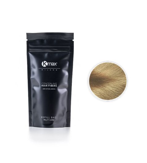 As fibras de reconstrução capilar Kmax são microfibras de queratina que aderem ao cabelo por meio de eletricidade estática, densificando o cabelo e cobrindo instantaneamente áreas de calvície, alopecia ou cabelos finos.